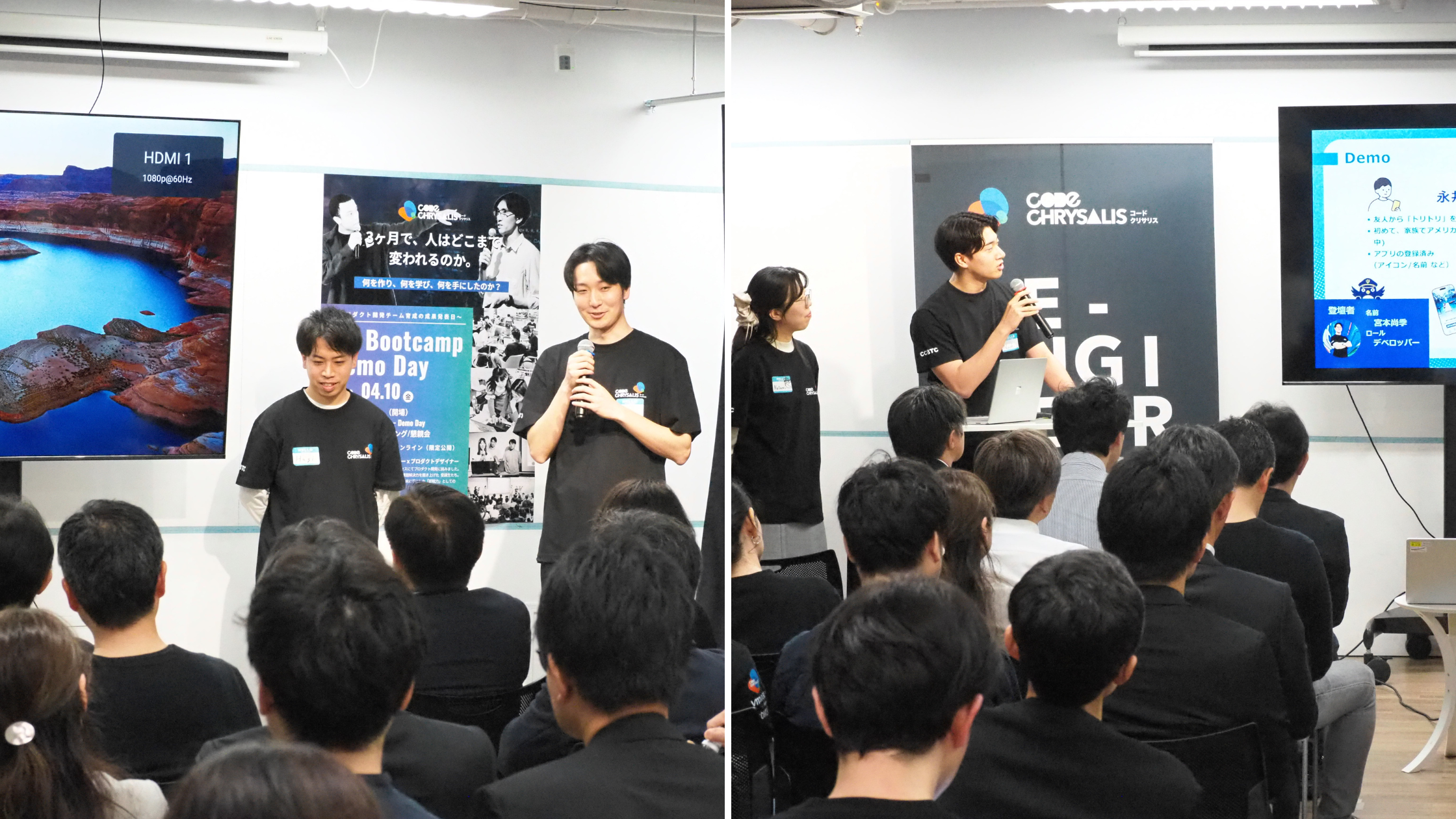 Demo Dayでは、2つのチームが1か月にわたる最終演習でのプロダクト(成果物)を発表しました。